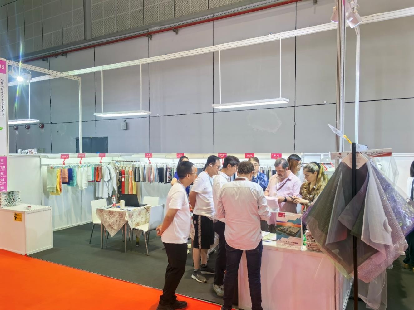 本次展会,元首针织重点推出抗菌消臭、单向导湿、纯棉高支针织面料等高科技绿色产品,展位吸引了大量专业买家与行业伙伴驻足交流,包括来自俄罗斯、韩国、印度、孟加拉、土耳其等国家和地区的成衣制造商和品牌代表,全面展现企业产品向“新”力和技术硬实力。公司销售与技术团队现场就产品性能、技术参数、订单定制及交付周期等提供了专业解答,并根据客户要求制定一对一销售方案,增强了客户对产品竞争力的认可。